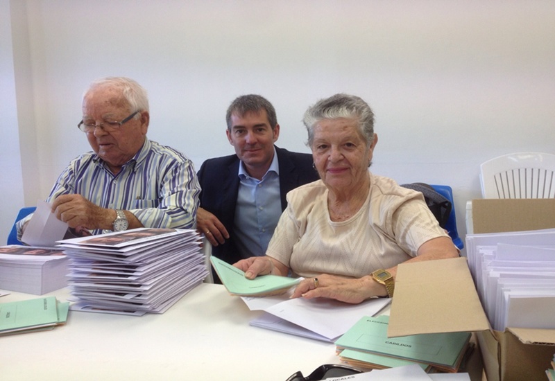 El candidato de CC a la Presidencia del Gobierno de Canarias compartió jornada de trabajo con compañeros de partido y simpatizantes, a los que ayudó a ensobrar las papeletas
