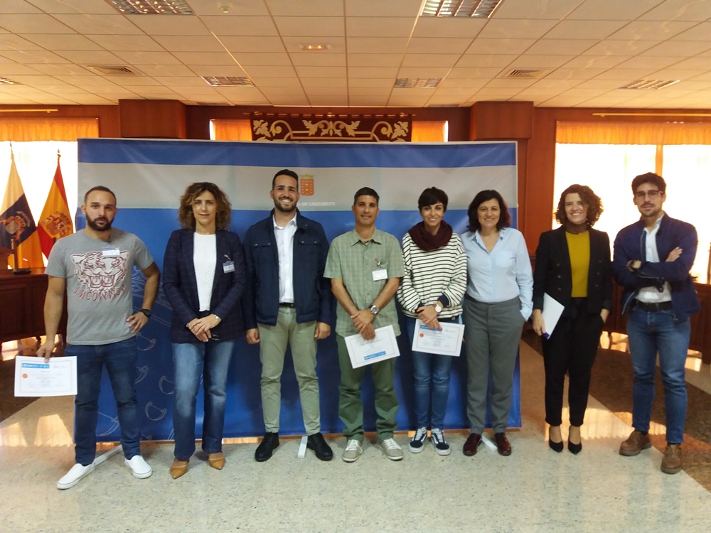 Participantes en el curso 'Diseño de proyectos de Innovación Social', organizado por el Cabildo de Lanzarote a través del Área de Empleo y financiado por el Fondo de Desarrollo de Canarias (FDCAN), recibieron hoy martes sus diplomas acreditativos en un acto que ha contado con la participación del director insular de Empleo, Jorge de la Guardia. En total participaron en el curso de 15 profesionales de diferentes sectores laborales interesados en promover nuevas iniciativas sociales en la isla.