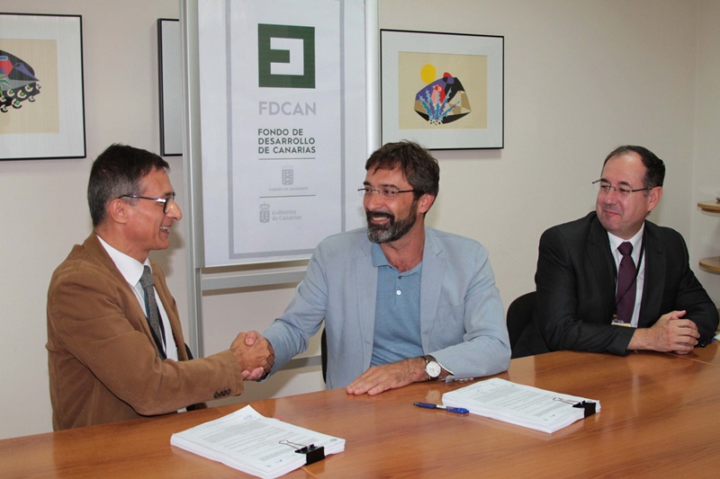 La adjudicación se cerró en 12.572.500 euros y está cofinanciado con recursos del FDCAN y del Cabildo de Lanzarote, incluido en el programa ‘Instalación de Energias Renovables’. En la firma también estaba Juan Tomás Vitores, responsable comercial en Canarias en Elecnor. La empresa adjudicataria tiene diez meses para ejecutarlo. En enero del 2018 debe estar en marcha.