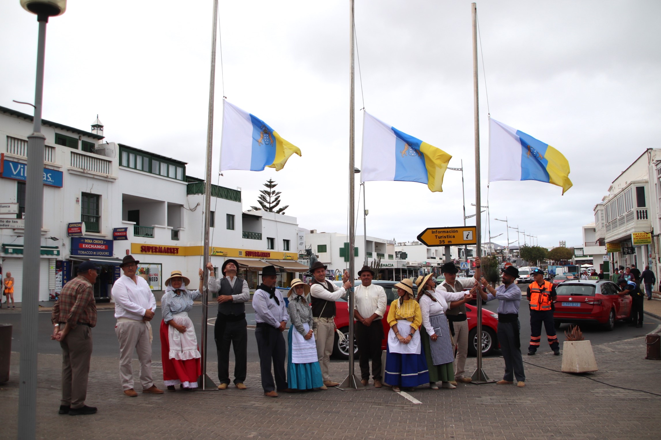 Cinco grupos de música tocando y bailando en plaza pública, entre los pueblos de Uga y Playa Blanca, pusieron la nota folklórica en los actos conmemorativos del Día de Canarias, que el municipio de Yaiza celebró con sendos tenderetes el miércoles por la tarde noche en Uga y este jueves 30 de mayo, Día Grande de la Comunidad Autónoma, en Playa Blanca, aparte de la ceremonia institucional de izado de banderas en la calle Limones de Playa Blanca, presidida por el alcalde, Óscar Noda, donde la Banda Municipal de Yaiza ofreció un estupendo concierto de la mano de su director, Geovanni Noda.