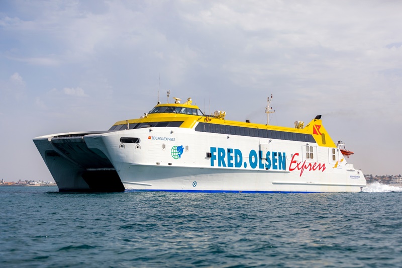 La línea que une Fuerteventura y Lanzarote de Fred. Olsen Express ofrece diariamente siete viajes desde cada puerto, conectando Corralejo (Fuerteventura) y Playa Blanca (Lanzarote) en