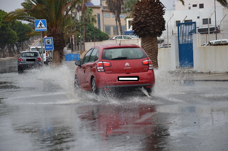 La lluvia que está cayendo en Lanzarote, con motivo de la tormenta Hermine, ya está dejando las habituales imágenes que se dan cuando cae más agua de la que Arrecife, por infraestructura, puede soportar.