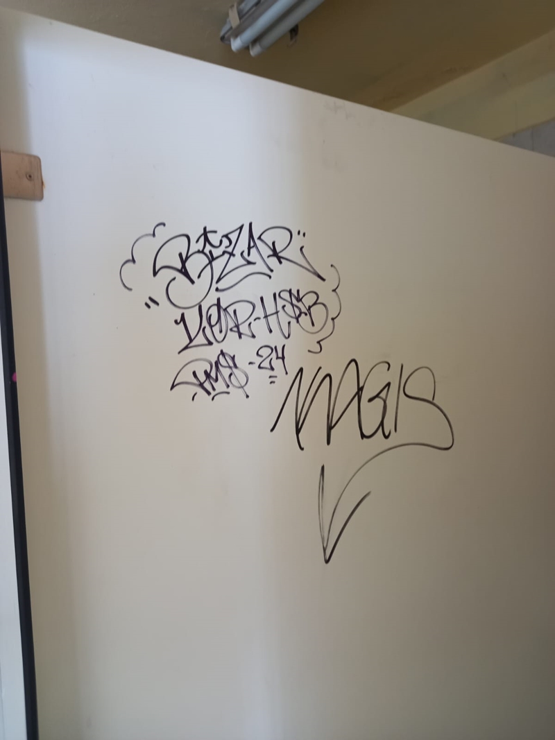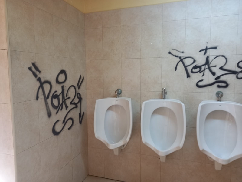 Las paredes de los servicios públicos municipales amanecían este sábado llenas de grafitis