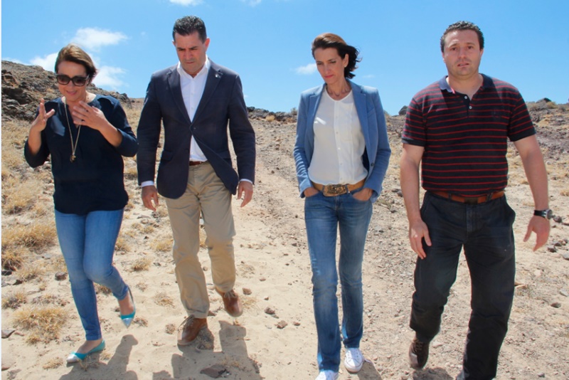 La consejera de Turismo del Gobierno de Canarias, María Teresa Lorenzo, el director general de Patrimonio, Miguel Ángel Clavijo, la consejera cabildicia del Área, Carmen Rosa Márquez, la alcaldesa de Yaiza, Gladys Acuña, y el concejal de Patrimonio sureño, Óscar Noda, mantuvieron el pasado viernes una reunión en el Ayuntamiento y luego visitaron la zona arqueológica del Rubicón, situada en el Monumento Natural de Los Ajaches, en compañía de un equipo técnico de las instituciones.