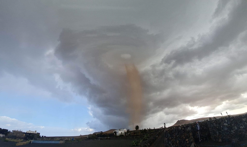 El proceso tormentoso que está viviendo parte de la isla deja imágenes sorprendentes en el cielo de Lanzarote con la formación de unas especies de columnas de humo similiares a los tornados. Ha granizado en buena parte del interior de la isla, en Tinajo, en Masdache, y sobre todo se está produciendo una caída de las temperaturas de forma espectacular, en Haría se ha llegado a los 9 grados.