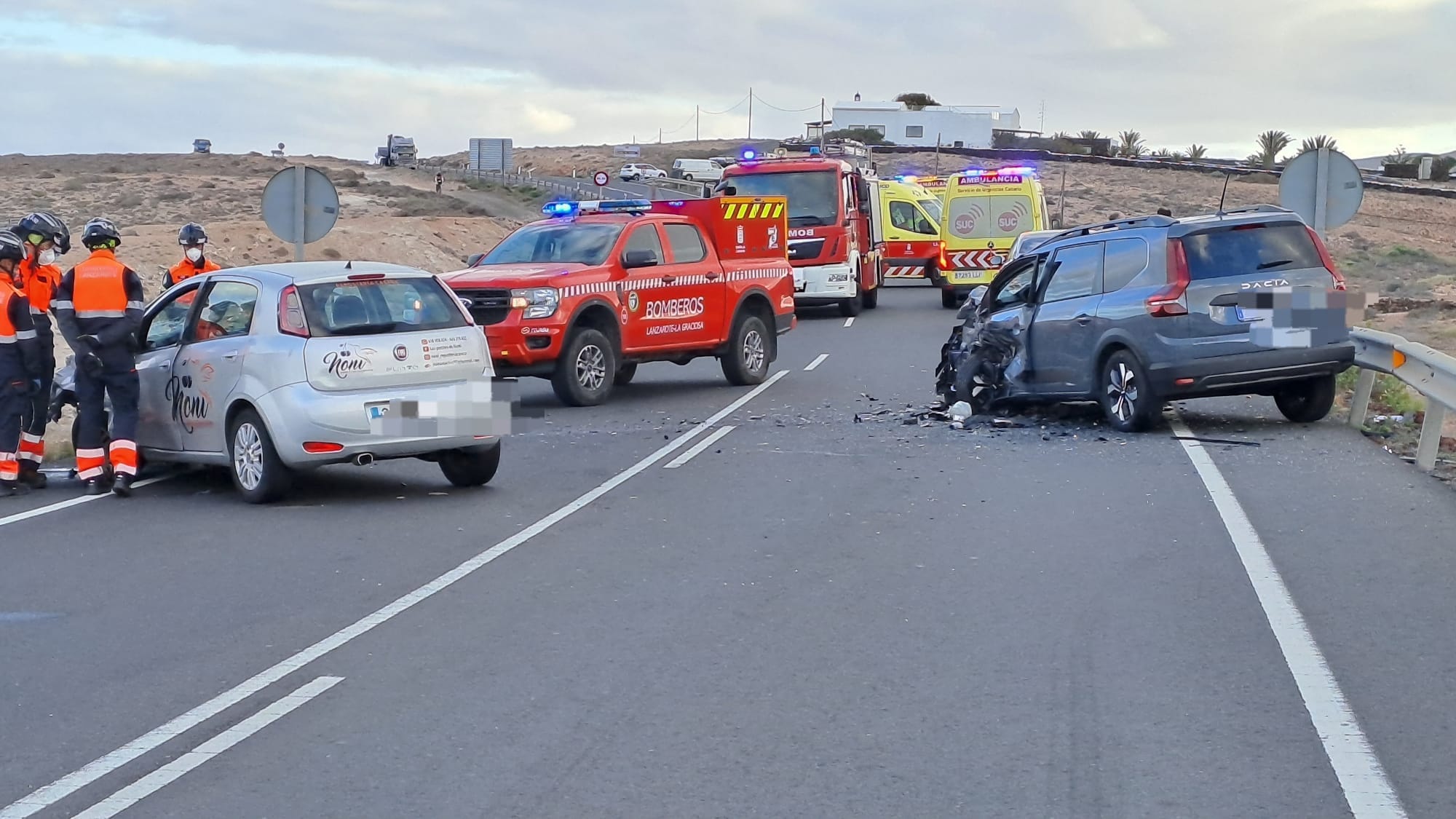 Hasta el lugar se desplazaron varias ambulancias, incluida una medicalizada, además de los bomberos, agentes de la Policía Local de Haría y la Guardia Civil. Debido a que los vehículos accidentados quedaron sobre la calzada, la Guardia Civil se vio obligada a desviar temporalmente el tráfico por Tabayesco para evitar mayores complicaciones en la circulación.