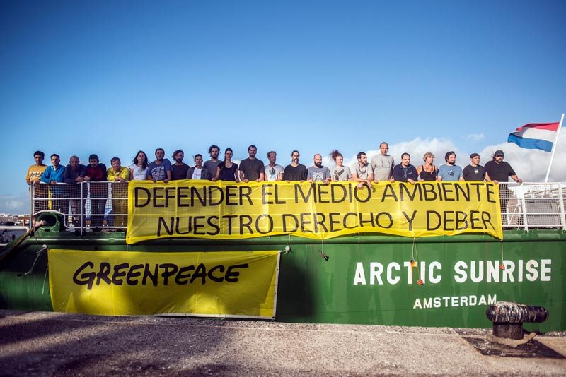 La organziación ecologista ha decidido desconvocar las concentraciones ante las delegaciones de Gobierno de las capitales de provincia para esta tarde, pues estaban previstas para pedir la liberación del barco Arctic Sunrise, algo innecesario ante el nuevo escenario. Sin embargo, sí mantiene las concentraciones a las 18 horas ante las delegaciones canarias para mostrar una vez más su más absoluto rechazo a las prospecciones.