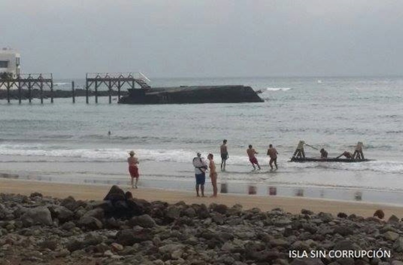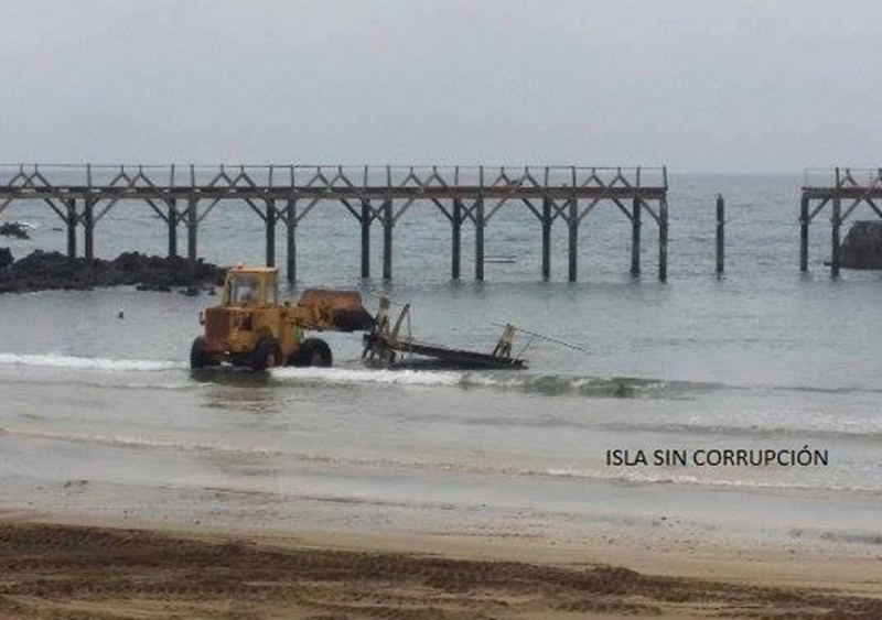 Así, aunque muchos creían que esta madrugada se había desprendido parte de la pasarela, no ha sido así. Han sido los operarios municipales los que han hecho caer parte de la plataforma que estaba dañada, después de que el fuerte oleaje arrancara uno de los pilares en febrero del pasado año obligando a su cierre. Desde entonces, Haría está a expensas de Costas para concretar su arreglo a pesar de haber hecho varios requerimientos y, según ha adelantado el alcalde a Lancelot Digital, será una de las primeras cosas que le pedirá al nuevo senador.