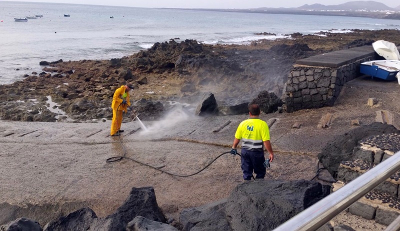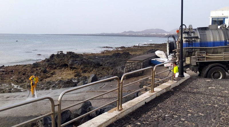 El Ayuntamiento de Haría está llevando a cabo además desde el mes de junio diferentes actuaciones en los núcleos del litoral consistentes en el acondicionamiento y mejora de los espacios públicos. Una de las primeras acciones llevadas a cabo ha sido la desinfección de los contenedores de basura orgánica de los núcleos de la costa para evitar los molestos olores y la proliferación de moscas, tan habitual durante el periodo veraniego.