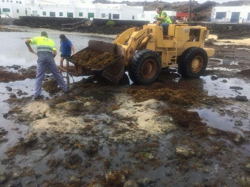 El Ayuntamiento de Haría ha acometido una serie de trabajos de limpieza a lo largo de diferentes puntos del litoral de Órzola con la finalidad de retirar la seba que también se ha acumulado en esta zona costera de la isla.