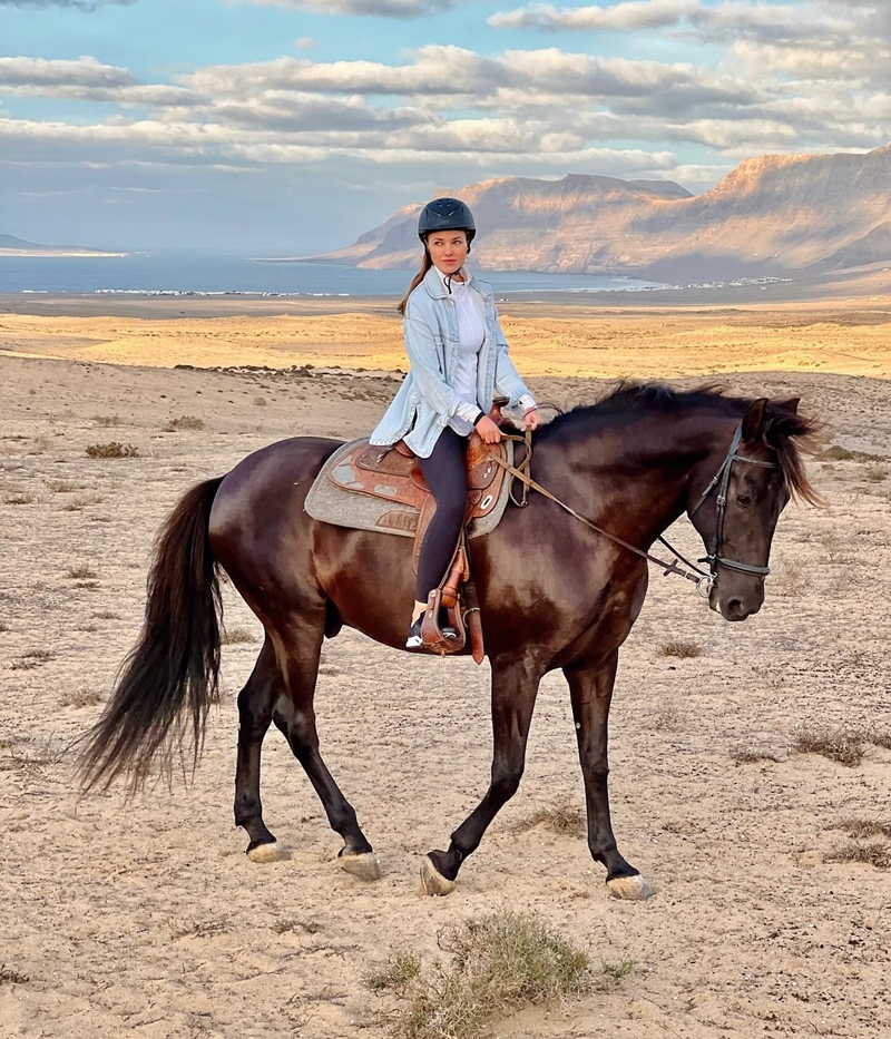 Helen Lindes aparece fotografiada durante una noche en el Charco de San Ginés con las luces de fondo reflejadas en esta preciosa lengua de mar que tenemos en Arrecife. Y en otra de las instantáneas se la ve montando a caballo cerca de la playa de Famara. “Dos cosas que me hacen muy feliz, los caballos y Lanzarote”, señala la modelo que es una enamorada de su isla y que se ha convertido en una auténtica embajadora de las bellezas de Lanzarote.