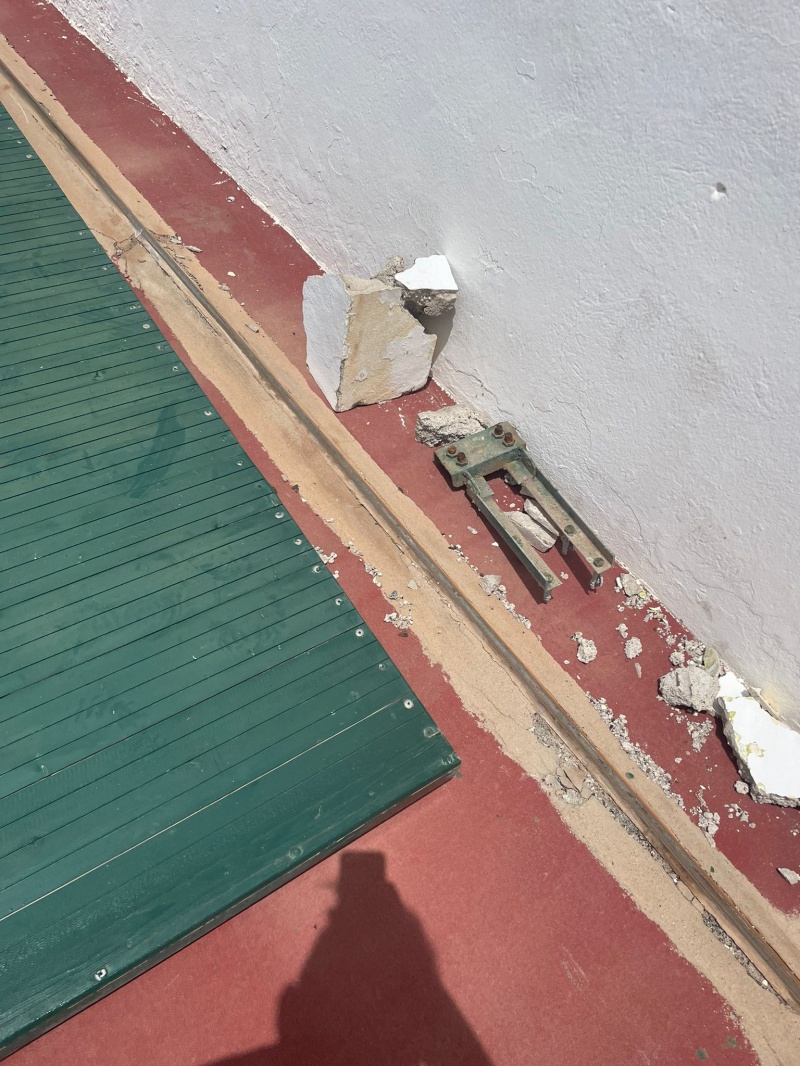 La fuerte racha de viento sacó, tal y como se ve en la fotografía, la puerta corredera de su anclaje, tanto de la pared, como de los railes del suelo.