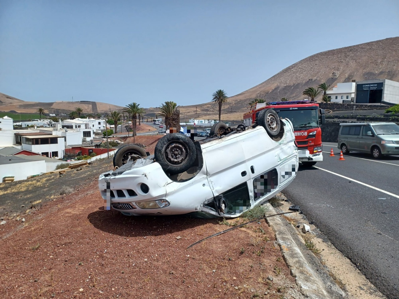 Un hombre sufría heridas de carácter moderado este mediodía en la carretera LZ-2, a la altura del Parque de Bomberos de Uga, cuando la furgoneta que conducía se salió de la carretera y dio varias vueltas de campana.