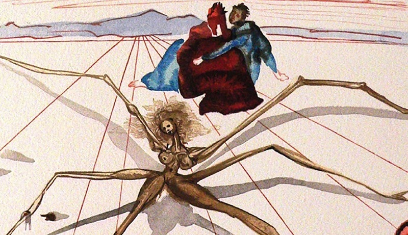 La “Divina Comedia” fue ilustrada, entre otros, por Botticelli, Miguel Ángel y Gustavo Doré, antes de la colosal obra de Dalí, y por Barceló en los últimos tiempos. Pero Dalí, a pesar de su profundo conocimiento de la obra de Dante, no se limita a ilustrar los versos sino que, a partir de ellos, deja que su universo personal emerja libremente, reflejando sus obsesiones y motivos recurrentes, combinando el impulso surrealista con la aplicación del Renacimiento y Técnicas y estilos barrocos.