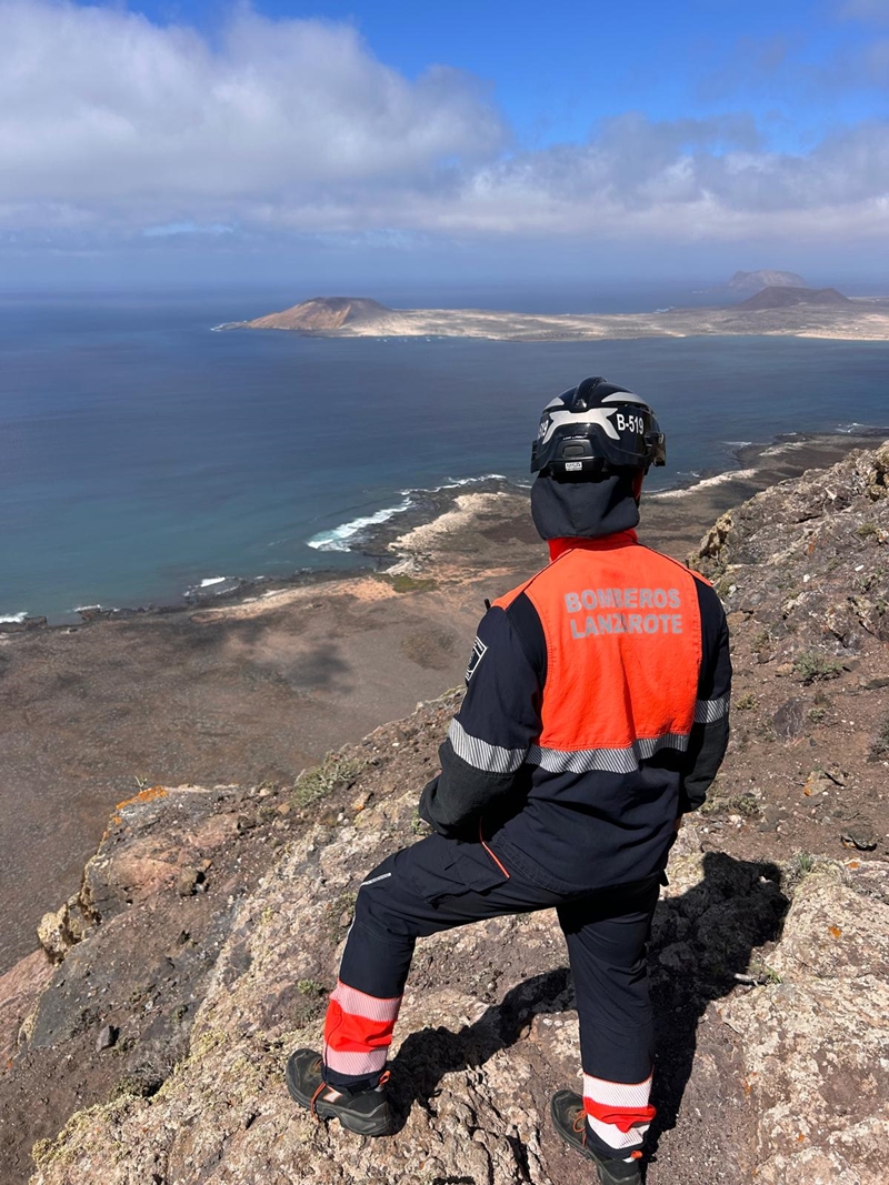 Los bomberos, alertados por el CECOES, acudieron a una llamada de emergencia por una columna de humo en medio del risco de Famara.