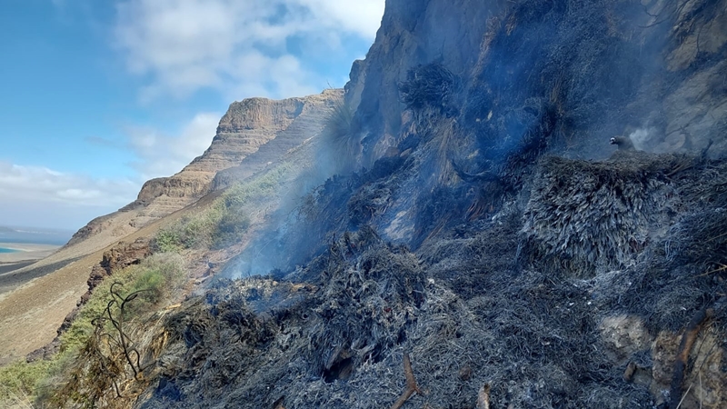 Los servicios de emergencia, que se trasladaron desde La Graciosa, comprobaron que se trataba de un fuego que se había originado en la copa de una palmera y que estaba prácticamente extinguido cuando llegaron.