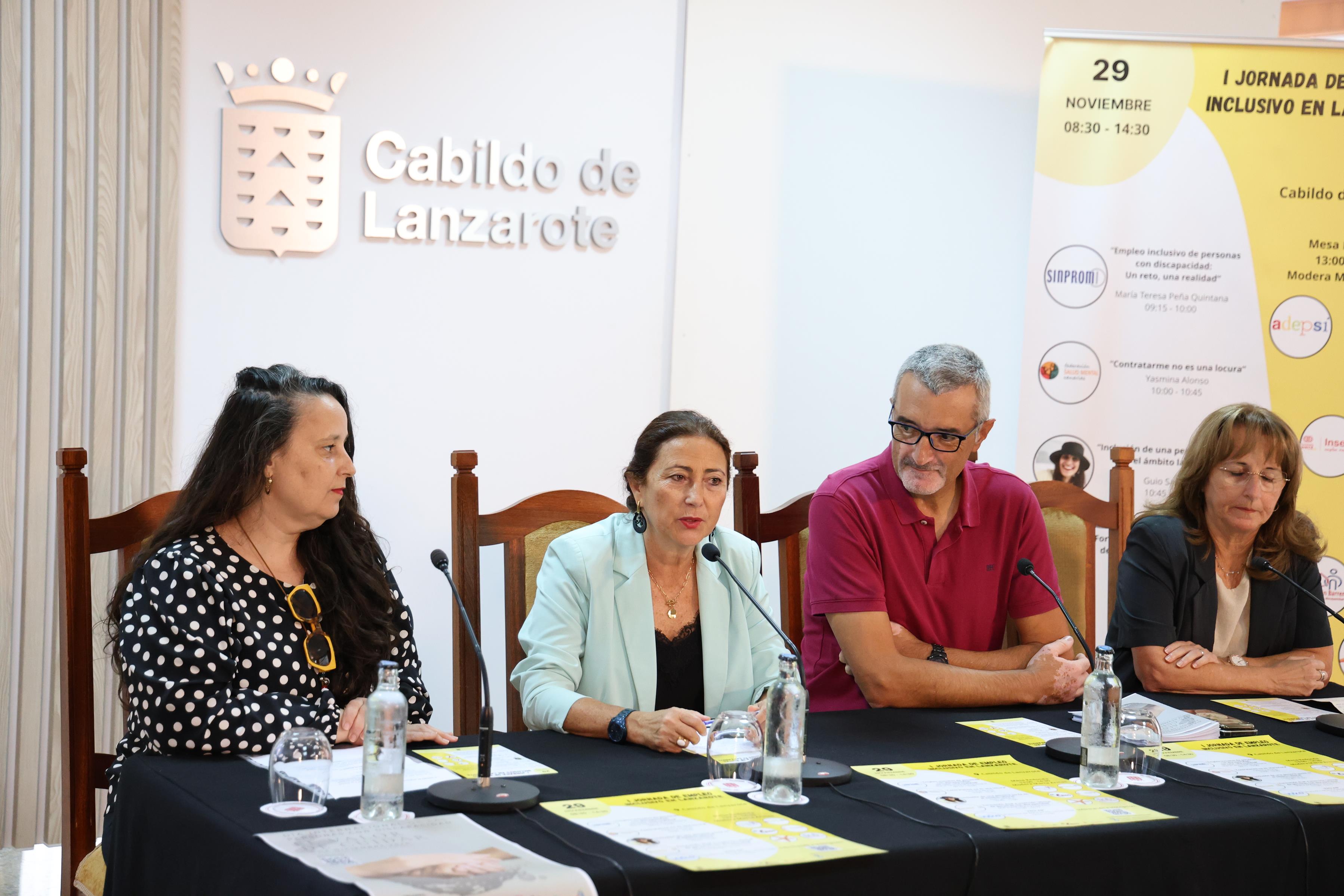 El Cabildo de Lanzarote, a través del Área de Empleo, que gestiona Ascensión Toledo, ha presentado el programa de las primeras Jornadas de Empleo Inclusivo que se celebran en la isla y que tienen como objetivo impulsar la empleabilidad de las personas con diversidad funcional o discapacidad.