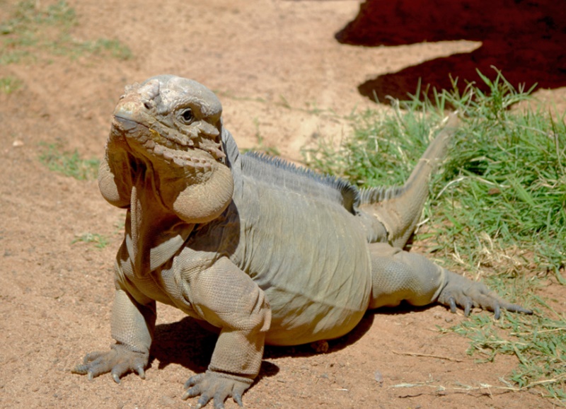 Entre los grandes lagartos, la iguana cornuda es uno de los más notables. Este extraño saurio terrestre, del que se conocen cinco especies, se parece a una verdadera iguana, con un cuerpo achaparrado y miembros macizos y cortos. La cola, por el contrario, es muy larga. La iguana rinoceronte vive en el suelo y raramente trepa a los árboles o a los arbustos. Son diurnas y duermen por la noche en el fondo de sus madrigueras que cavan con las patas anteriores provistas de fuertes garras. Corren rápidamente y huyen al menor signo de peligro. Son vegetarianas y se alimentan de hojas y frutos. Nunca acuden al agua, aunque estén emparentadas con las iguanas terrestres y marinas del archipiélago de Galápagos.