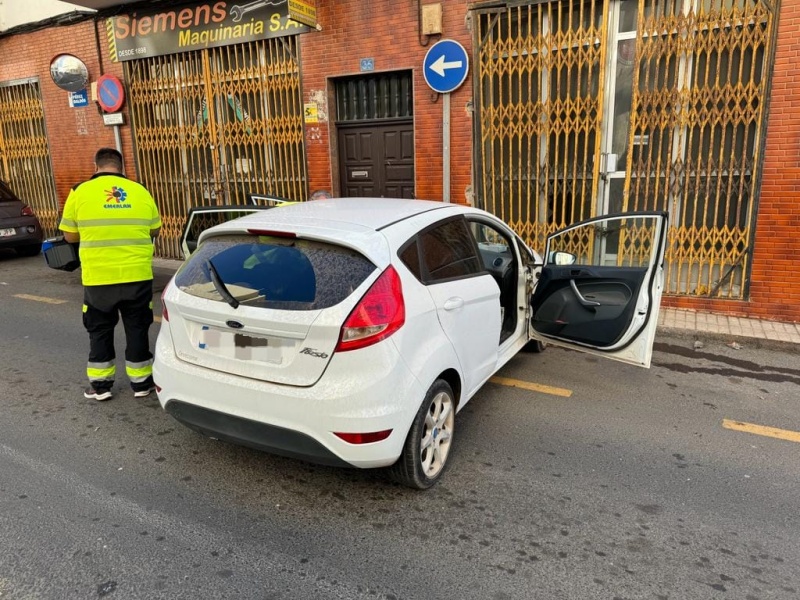 Un coche perdía el control e impactaba este miércoles de frente contra un edificio situado en la capitalina calle Pérez Galdós.
