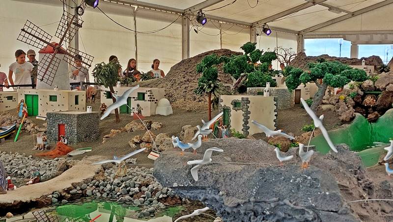 50 figuras de barro, 50 casas, 30 barcos, 60 palmeras y árboles, además de una infinidad de elementos y de miniatura de atrezzo llenan desde hoy un espacio de 200 metros cuadrados en el Parque José Ramírez Cerdá, en pleno corazón de Arrecife.