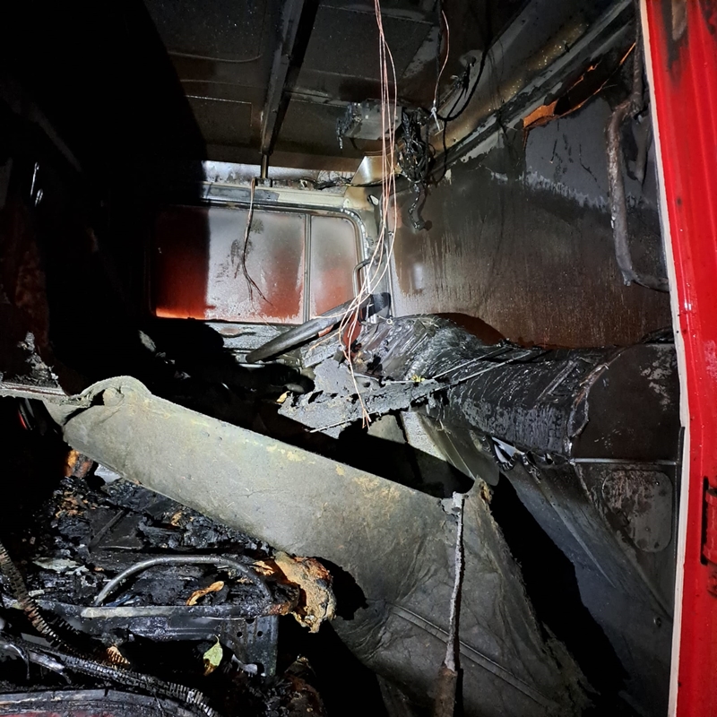 La actuación de los bomberos impidió que el fuego se propagase a todo el vehículo, pero la cabina del conductor quedó totalmente carbonizada.