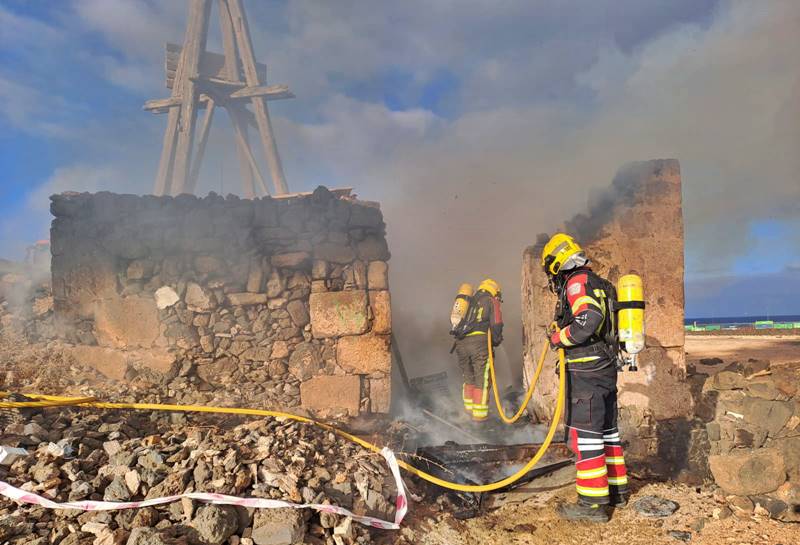El Consorcio de Seguridad y Emergencias ha informado sobre la actuación en un incendio ocurrido en un molino de las salinas de Puerto Naos ubicadas en la carretera de los Mármoles en Arrecife, frente al Castillo de San José.