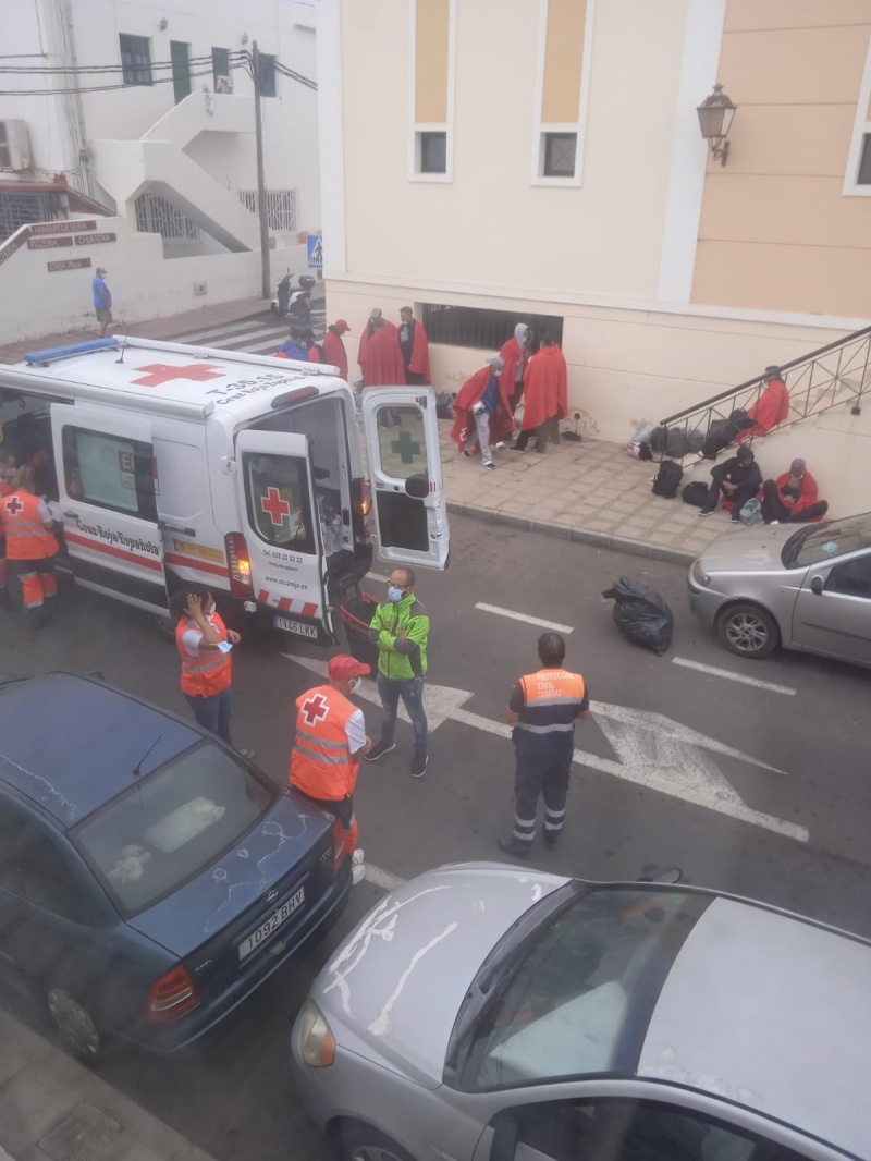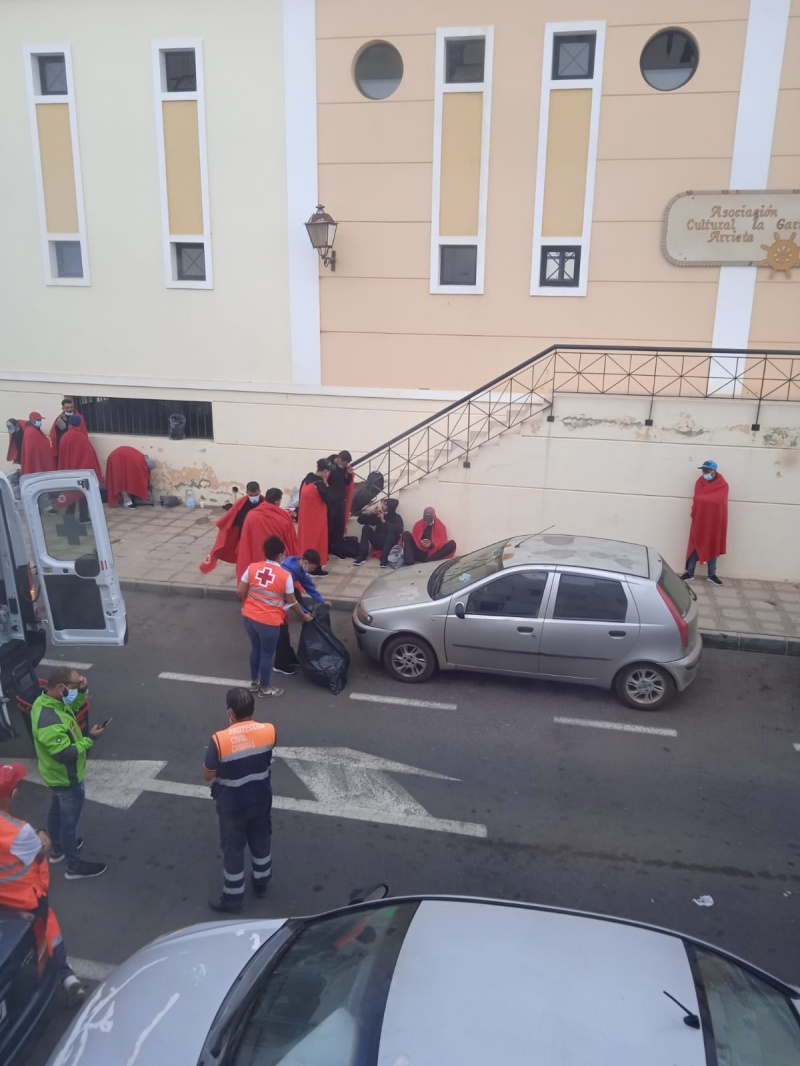 Al parecer, la veintena de inmigrantes que llegaba en la embarcación, al no encontrar obstáculos, salieron caminando por su propio pie por medio del pueblo hasta que las fuerzas de seguridad los interceptaron a la altura del tele club de Arrieta.