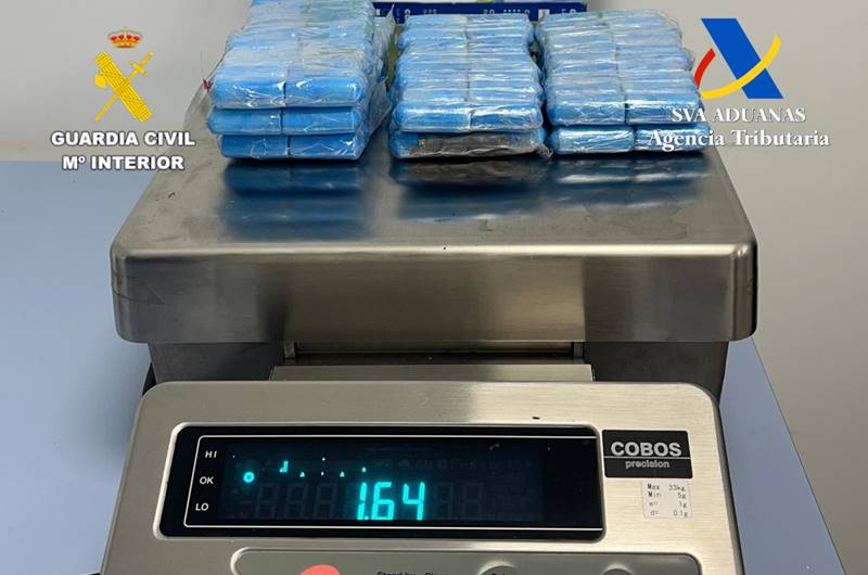 Inmediatamente se realizaron los test correspondientes que dieron positivo en esta sustancia, alcanzando el peso total de los intervenido a un 1 kilo y 640 gramos, procediéndose a la detención de la presunta autora que fue puesta a disposición judicial del Juzgado de Guardia de los de Arrecife.