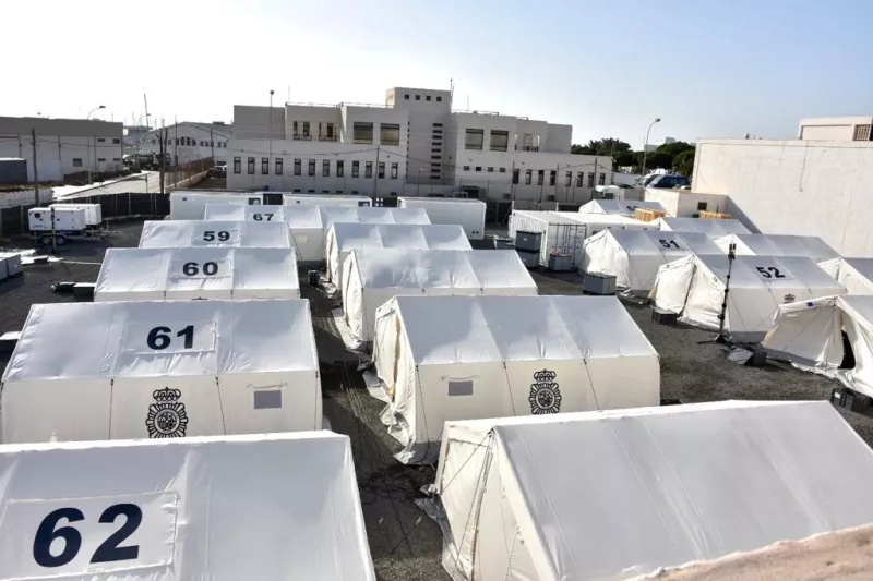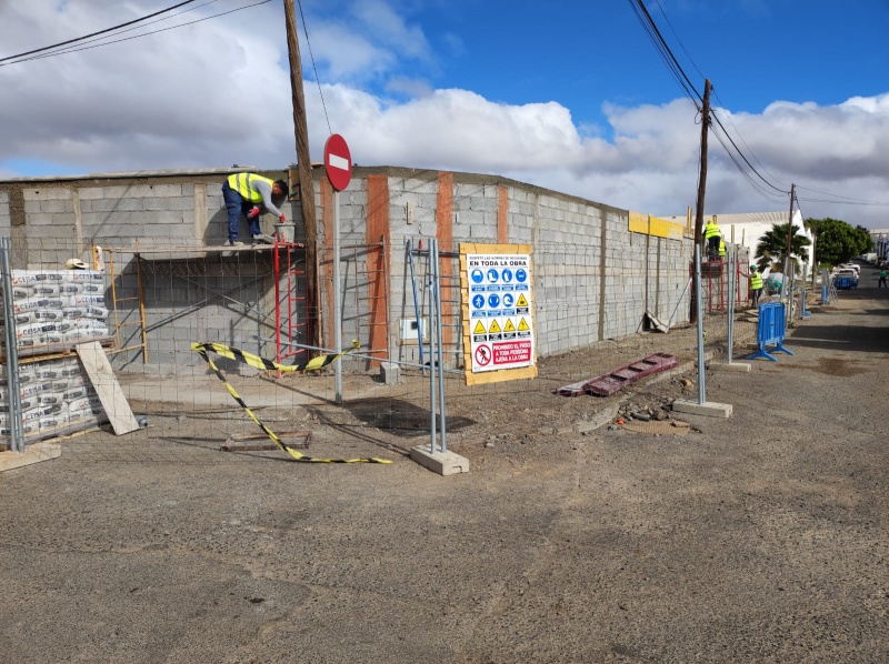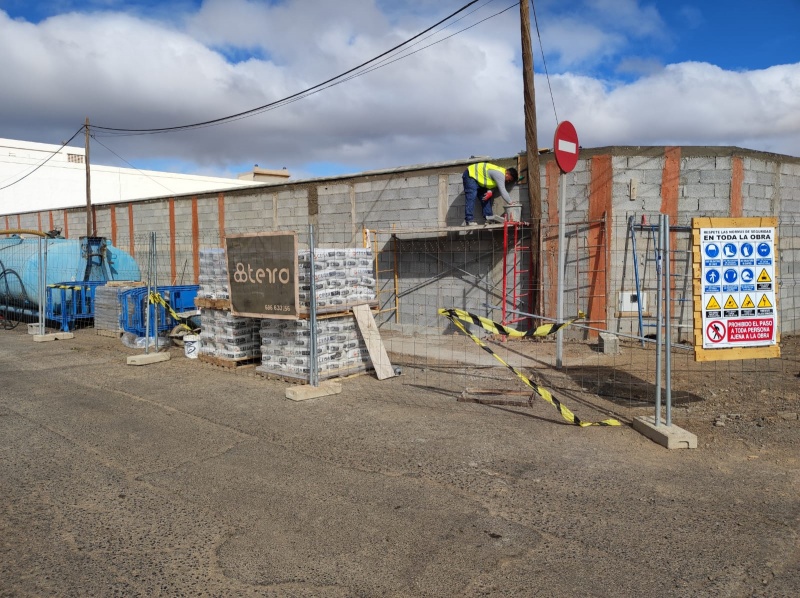 El Ministerio del Interior ha comenzado a levantar un muro en torno al CATE de Arrecife, otorgándole con esta obra oficialidad al polémico centro de acogida que tanta controversia generó a finales de 2021.