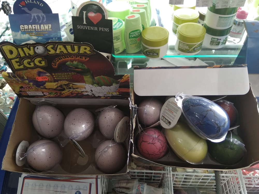 Además, los agentes intervinieron juguetes sobre los que la Agencia Española de Consumo, Seguridad Alimentaria y Nutrición AECOSAN, había emitido alertas, concretamente un juguete denominado Huevos con dinosaurios de la marca Che Que Guai, y en el que la naturaleza del riesgo es la "Asfixia" causada por piezas pequeñas ya que el material se expande más de lo permitido.