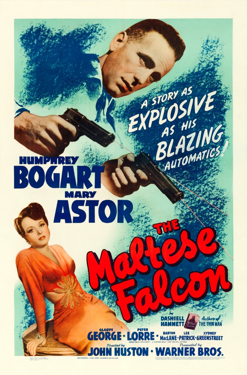 Con esta película represento a todo el cine negro de los Cuarenta y Cincuenta. Humphrey Bogart en Alza haciendo de tipo duro en una de las películas que acapararan buena parte de mis aficiones favoritas, iluminaciones fotográficas duras y oscuras, creo que no podría dejar pasar más de dos o tres meses sin ver películas de este estilo. La consecución de un guion bien resuelto que no se aleja de la novela original, salvo en alguna escena para facilitar su entendimiento en cine, y el tándem Houston- Bogart (pareja que rodaría cinco películas más) hacen redondo un film que se concibió para serie B, con un J. Huston debutante como director y un Bogart que no era del agrado de Hollywood. De hecho, el actor elegido George Raft, no quería trabajar con un director sin experiencia. De este modo Houston se lo pidió a Bogart al que ya conocía. Los años cuarenta fueron el inicio de muchísimas películas de género negro y en su mayoría con facturas impecables.