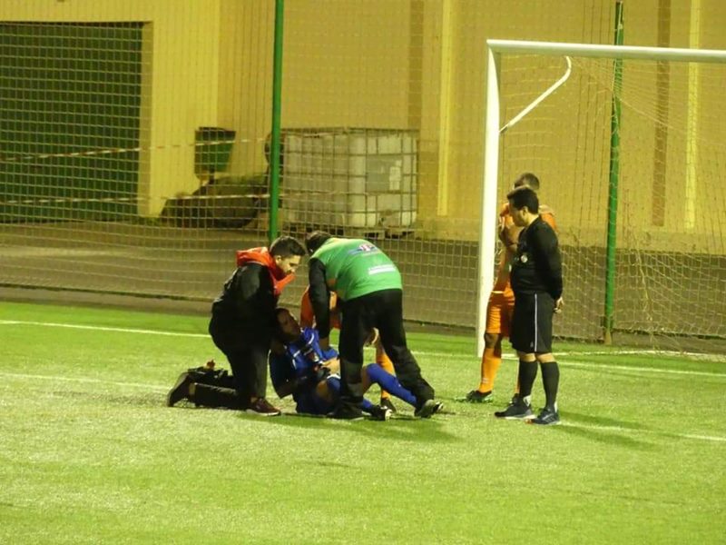 Joel Delgado sufre una fuerte lesión en un partido de fútbol