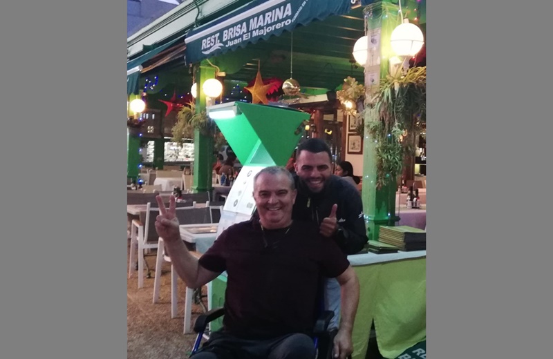El estar convaleciente en una silla de rueda no le impide ir todos los días al restaurante.