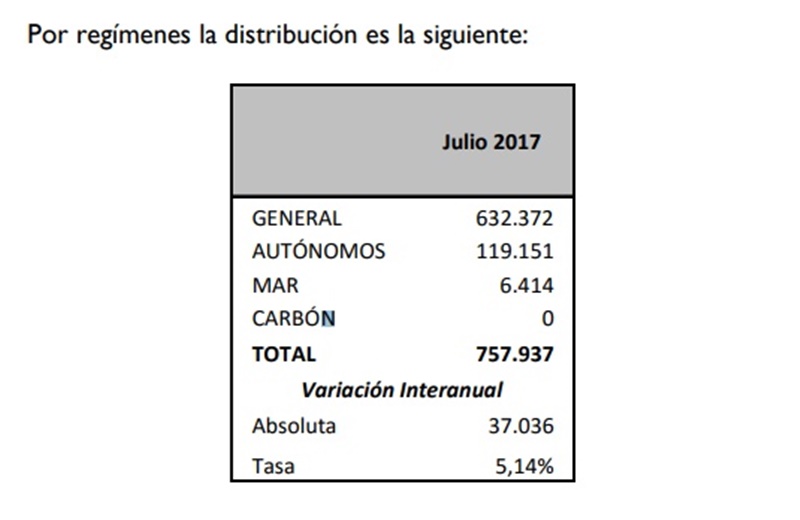 De la cifra total unas 632.372 personas pertenecen al régimen general y 119.151 personas al régimen de autónomos