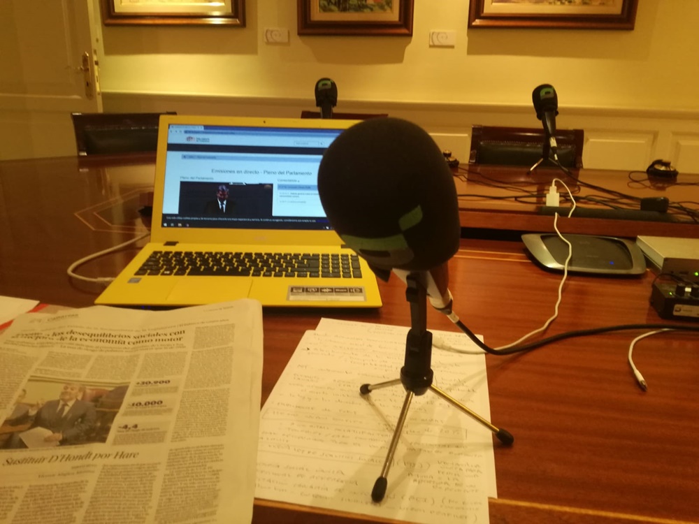 La 90.2 FM Lancelot Radio retransmitiendo en directo desde el Parlamento de Canarias