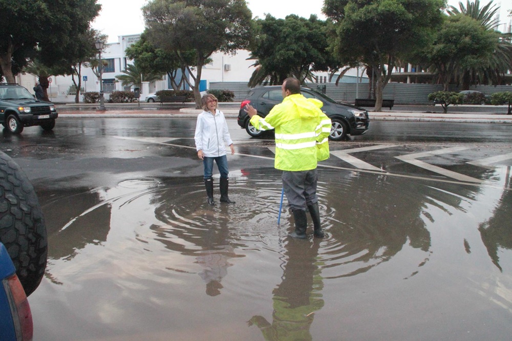 La alcaldesa de Arrecife Eva de Anta no ha querido que le lluevan las críticas de nuevo tras los incidentes del fin de semana pasado, y se ha puesto desde primera hora de la mañana el mono de trabajo para supervisar los desperfectos de la ciudad.