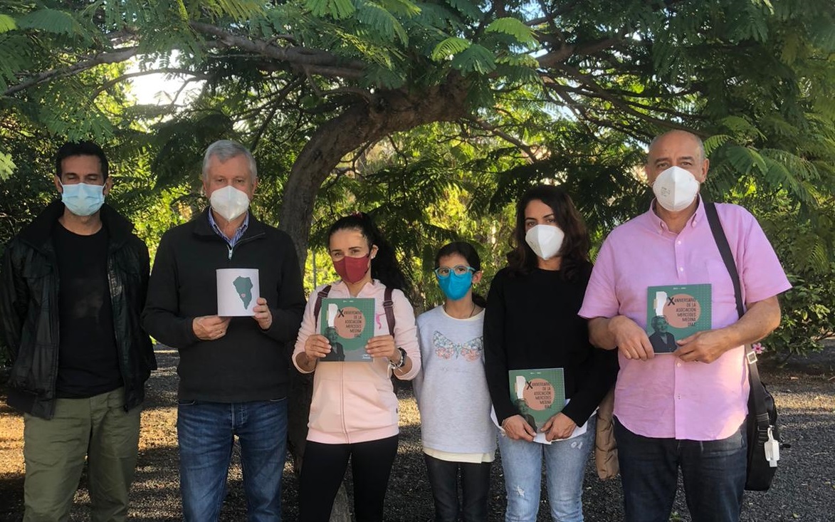 Las familias de dos alumnos del CEIP Todoque, engullido por el volcán, recibieron el donativo de la “alcancía solidaria” que la Asociación dispuso durante la celebración de las jornadas en su décimo aniversario de su creación. La recaudación se corresponde a las aportaciones voluntarias que los asistentes realizaron por la adquisición de la publicación “X Aniversario 2011-21)”, en el que se resume el conjunto de actividades solidarias llevadas a cabo durante este decenio.