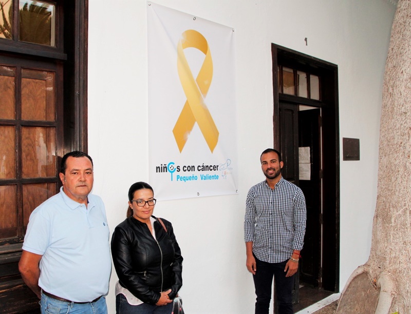 Entre otras acciones por esta causa, hay un llamamiento internacional para que durante la noche de este viernes 22 de septiembre las instituciones iluminen edificios públicos de dorado y los identifiquen con lazos del mismo color. Yaiza lo hace en la Molina de Playa Blanca y en la sede consistorial, donde se reunieron este viernes el alcalde accidental, Daniel Medina, el concejal de Servicios Sociales, José Antonio Rodríguez, y la trabajadora social de Pequeño Valiente, Guasimara Páez.