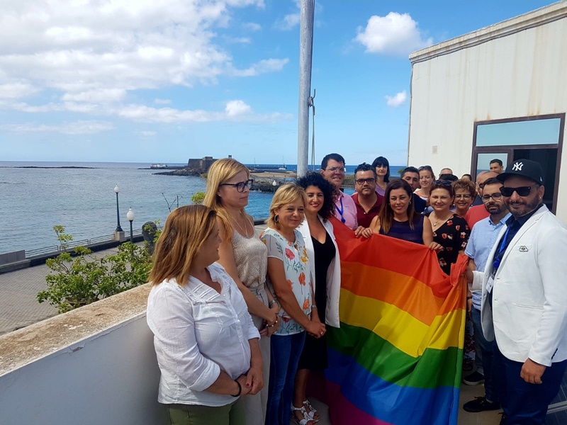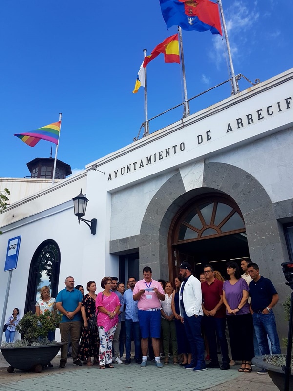 Arrecife, su nueva Corporación Municipal, se ha unido a esta conmemoración izando la bandera en la cubierta del edificio de las Casas Consistoriales y se leyó un manifiesto, por los representantes del colectivo LGBT+ en Lanzarote, a las puertas del Ayuntamiento donde estuvieron acompañados por la alcaldesa de Arrecife y toda la Corporación Municipal.