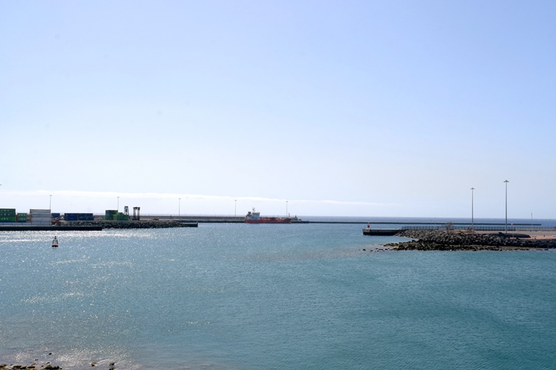 La cajonera 'Kugira', que atracó el pasado 4 de junio en Los Mármoles para realizar los bloques de hormigón de la ampliación del muelle, se despedía este lunes de Lanzarote.