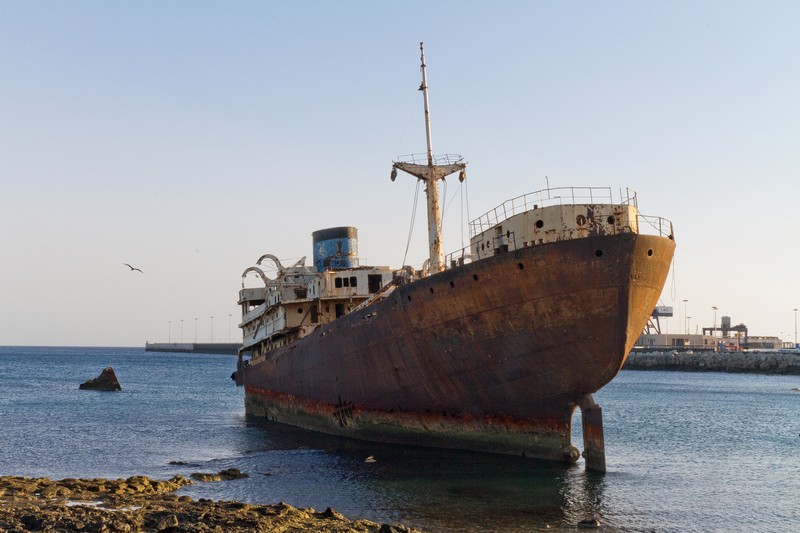 Los restos del Telamón permanecen encallados desde 1981 en la zona de Las Caletas. El buque encalló como consecuencia de una vía de agua en el casco, producida durante su viaje desde San Pedro (Costa de Marfil) a Tesalónica con un cargamento de troncos. Para evitar que se hundiera en el mismo muelle de Arrecife, lo arrastraron hasta la zona en que actualmente se encuentra, donde se terminó de partir para quedar en la posición inclinada en la que sigue en la actualidad.