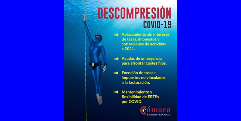 La Cámara de Comercio de Lanzarote y La Graciosa propone una descompresión necesaria para las pymes y los autónomos. El proceso es fundamental para garantizar que lleguen a la superficie el mayor número de empresas posible en esta nueva etapa que afrontamos, una vez superada la crisis sanitaria. Para ello, plantea una serie de medidas básicas, extraídas de las que ya se presentaron a todas las administraciones. Son cuatro puntos esenciales para evitar al máximo una catástrofe derivada de la desaparición de empresas y con ello, la pérdida de empleos.
