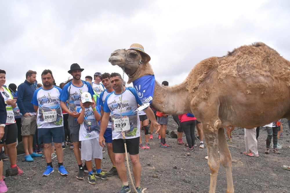 La camella con su dorsal y sombrero no dudó en echarse una carrera por La Geria, entorno al que está acostumbrada a recorrer. Cabe recordar que los camellos son muy populares en el pueblo sureño de Uga donde hay una gran tradición en la cría de estos animales que fueron tan importantes para el trabajo del campesino lanzaroteño.