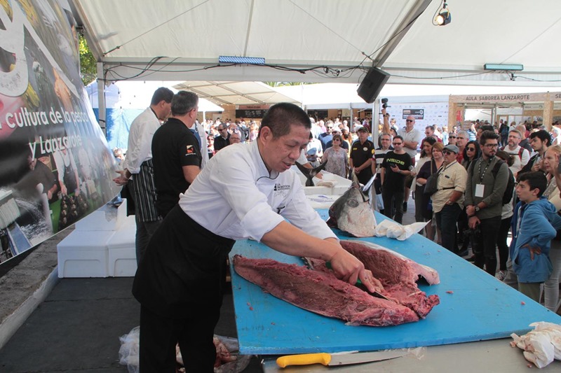 La primera jornada del Festival, que ha contado un año más con el respaldo de Saborea España a través de la presencia de los destinos Saborea Gran Canaria, Saborea Tenerife, Saborea Sevilla, Saborea Vinarós, Saborea Trujillo y Saborea Cambrils, ha tenido entre sus actos destacados el ronqueo del atún proporcionado por la Organización de Productores de Túnidos y Pesca Fresca de Lanzarote (OPTUNA 42) con los que los participantes en el Concurso Popular de Cocina, patrocinado por AVA Selección, elaborarán este domingo sus platos.