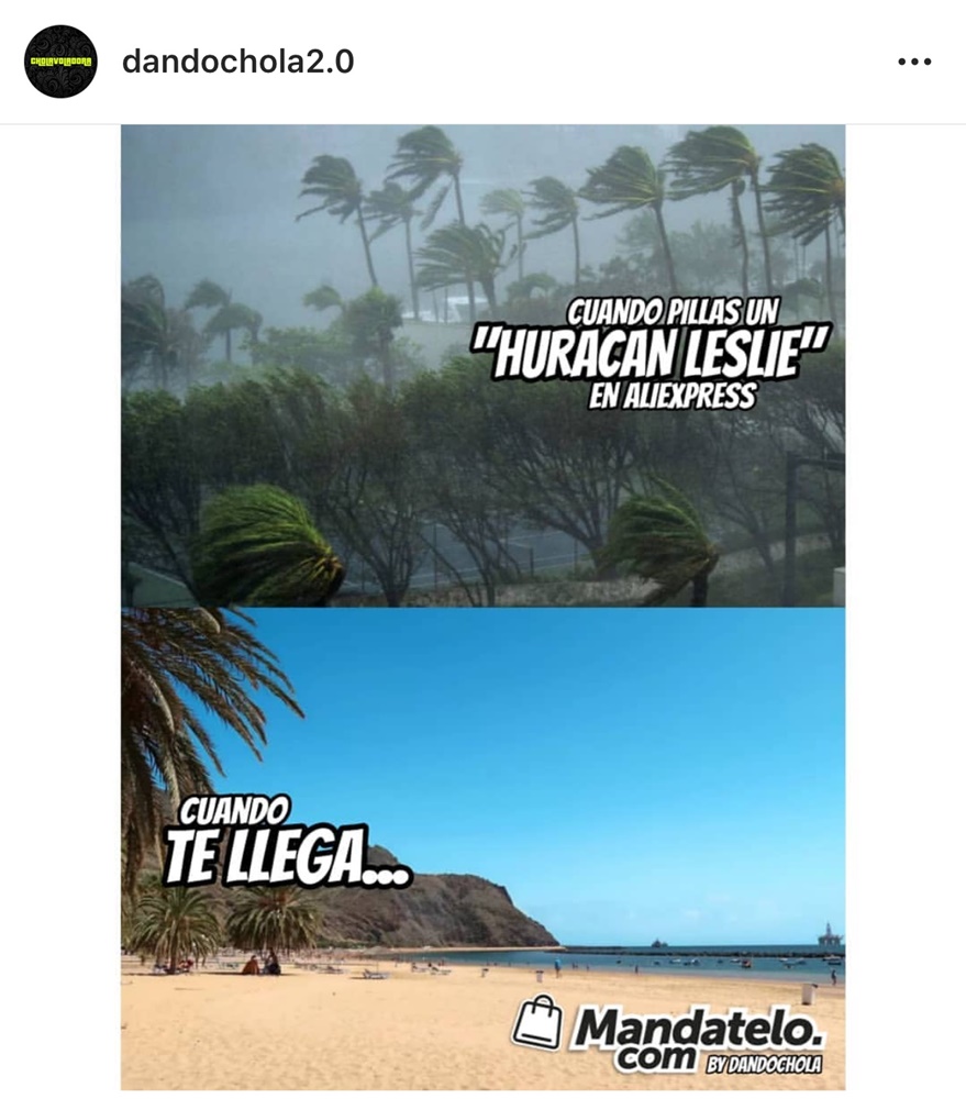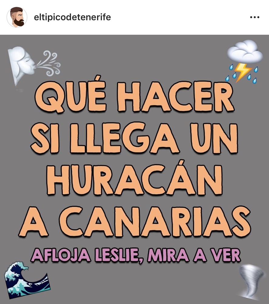 Páginas populares como 'El Típico de Tenerife', 'Dando chola' o el humorista Aarón Gómez, no han dejado pasar la oportunidad para hacer gracia con el huracán que más ha mantenido expectante a las islas.