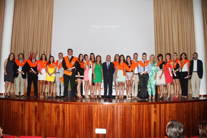 La Escuela de Turismo de Lanzarote entregó la orla a los 18 alumnos de Grado en Turismo de esta promoción en una emotiva ceremonia que tuvo lugar en el Salón de Actos del Cabildo y que estuvo presidida por el presidente del Gobierno de Canarias, Paulino Rivero, acompañado de la consejera insular de Educación y Cultura, Emma Cabrera, y la directora del centro decano de Canarias en Turismo, Eva Crespo.