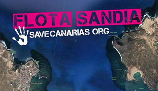 La salida de la 'Flota Sandía', la flotilla de embarcaciones que iba a partir el domingo de Islas de Lobos hacia la zona donde Repsol realiza los sondeos para realizar una manifestación marítima y labores de "vigilancia ambiental”, se ha pospuesto debido al mar estado de la mar a causa del temporal.