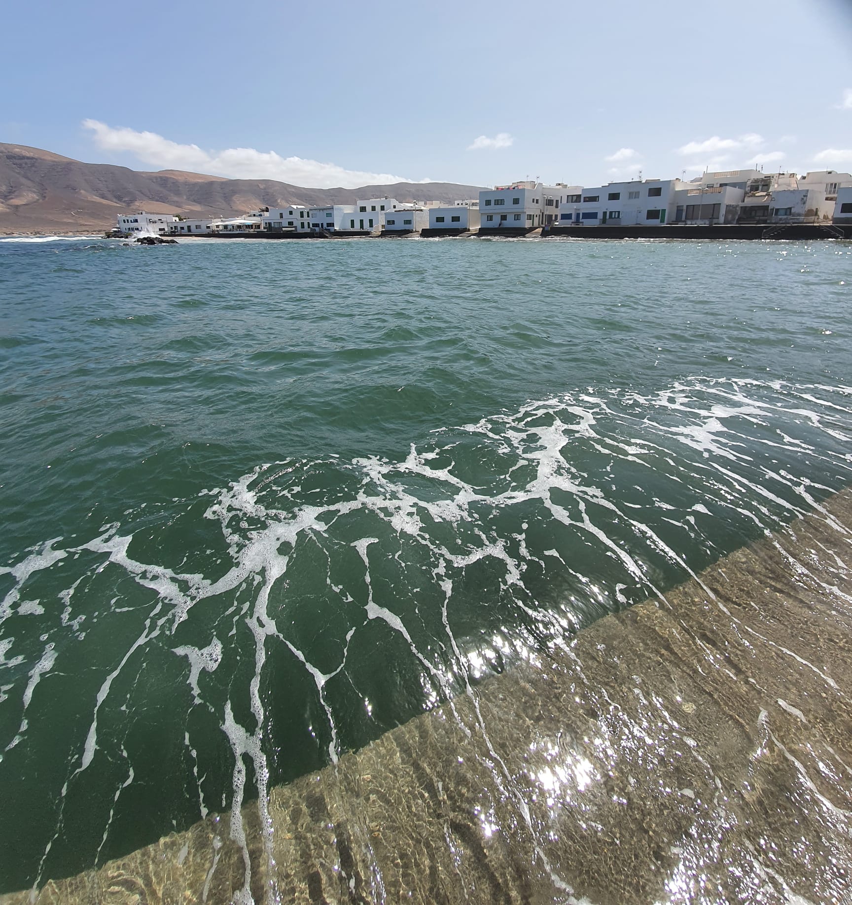 Las mareas del Pino continúan dejando imágenes inusuales en Lanzarote. En este sentido, este viernes se hizo viral una instantánea del muellito de la Caleta de Famara totalmente cubierto de agua.
