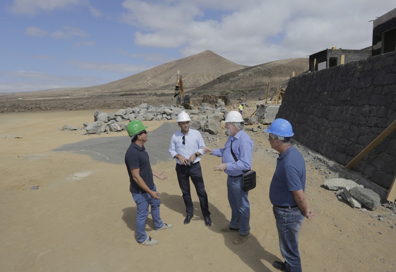 El alcalde de Teguise, Oswaldo Betancort, ha realizado la primera visita a las obras de la Ciudad Deportiva de Costa Teguise, acompañado por la dirección de la obra, que lleva a cabo la empresa Lanzagrava, así como por el arquitecto responsable del proyecto, José María Pérez.