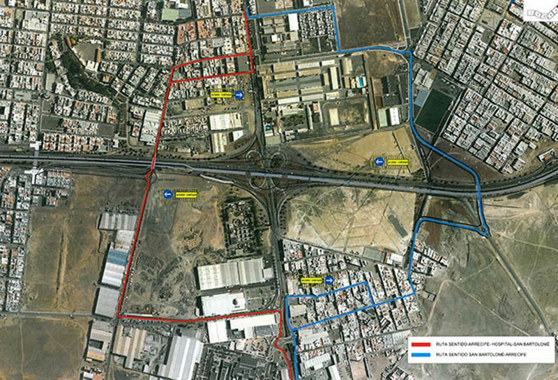 También serán cortados al tráfico los accesos a la rotonda de San Bartolomé desde los ramales de la LZ-3, permitiéndose sólo el tráfico de paso del tronco de la misma. La ruta alternativa será la Rambla Medular tanto en el acceso a Arrecife desde la LZ-2 como en el enlace de Tahiche.